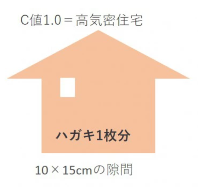 高気密住宅のC値(隙間相当面積)基準は、一般的に1.0㎠/㎡以下が目安とされ、30坪の戸建住宅でハガキ1枚分に相当します。